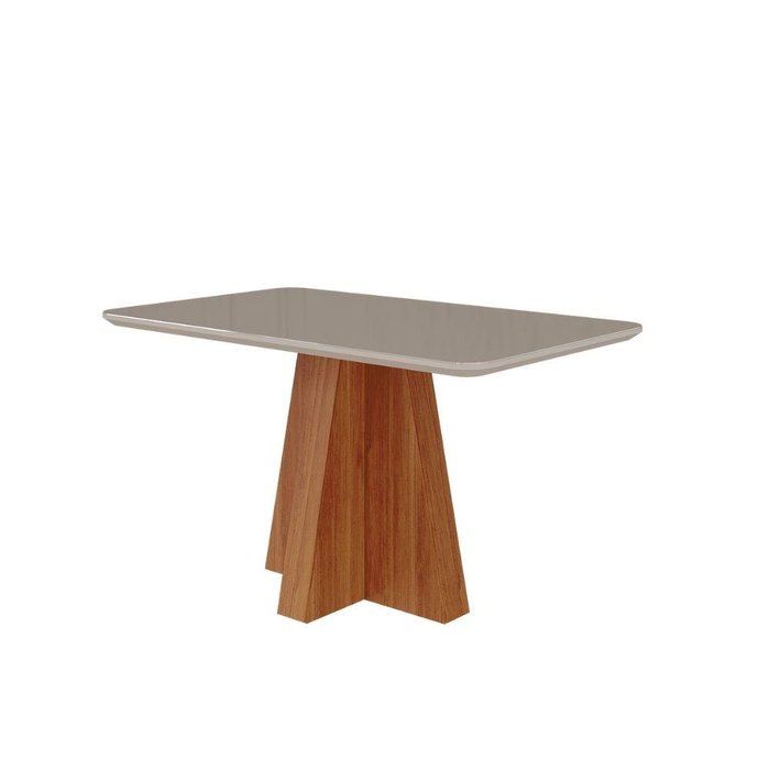 Mesa De Jantar Ratangular 130X80cm Tampo Mdf/Vidro Maite Cimol Cinamomo/Off White