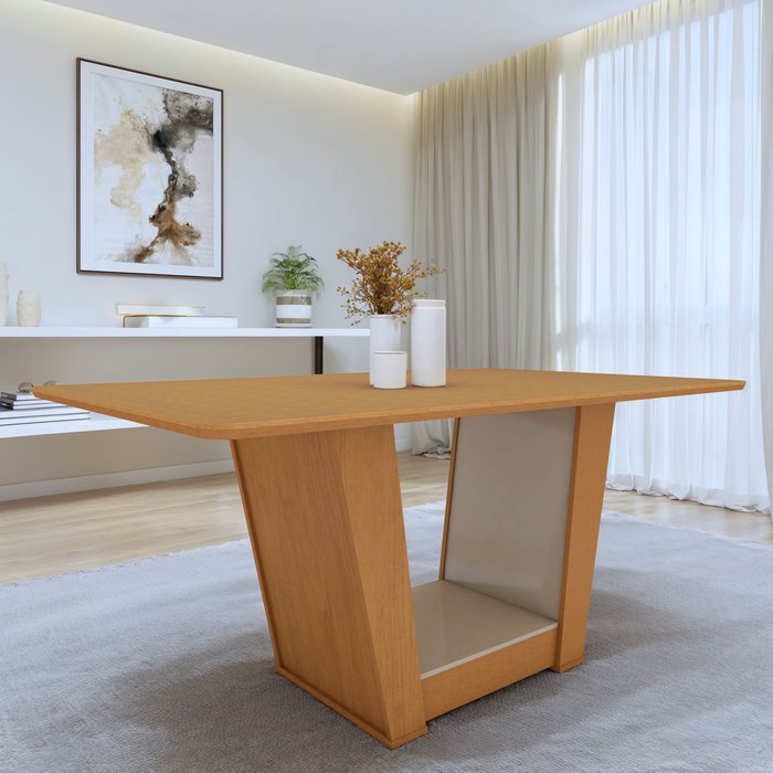 Mesa de Jantar Retangular 6 Lugares 170cm Tampo Mdf no Glass Apogeu Amêndoa/Off White