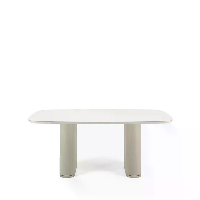 Mesa de Jantar Retangular C/ Vidro para 6 Lugares Lintz 184 Cm - Off White Fosco C/ Pu Bege -
