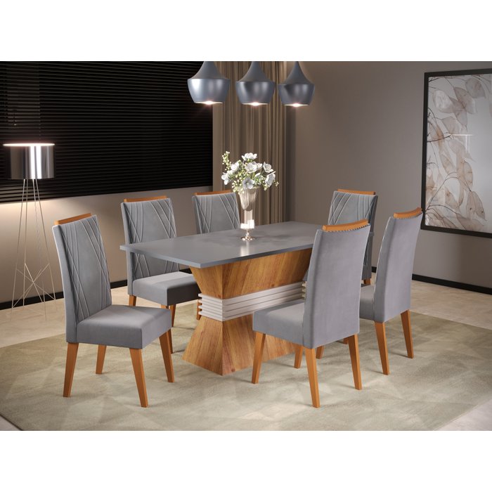 Mesa de Jantar Retangular Empatic com 6 Cadeiras Madeira Maciça Vegas Mel/Grafite