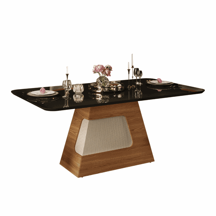 Mesa de Jantar Retangular Escala 1800 180 cm Cor Carvalho Europeu/Preto Gloss - DJ Móveis