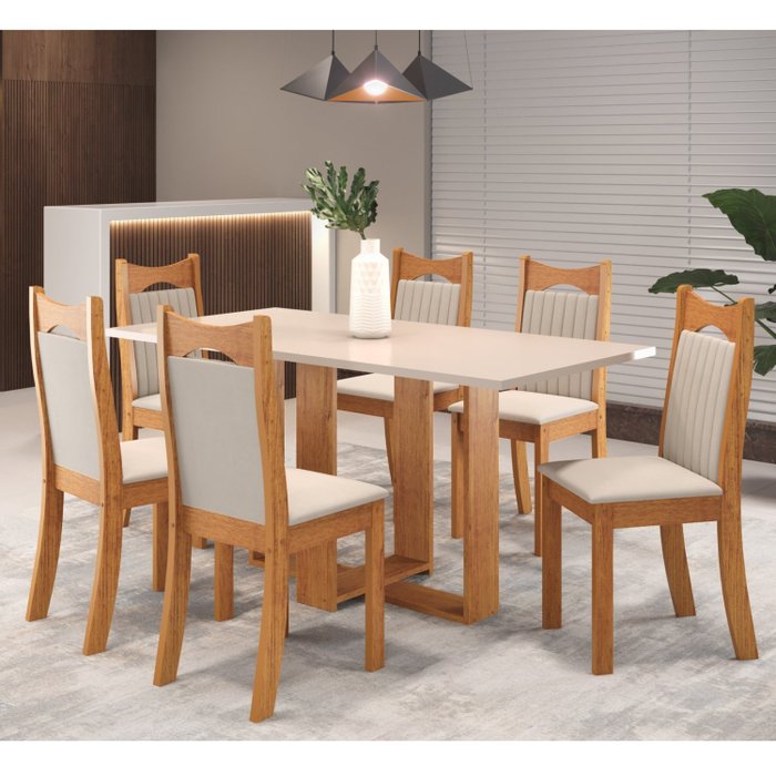 Mesa de Jantar Retangular Laguna com 6 Cadeiras Dalas Mel/Blonde/Marfim