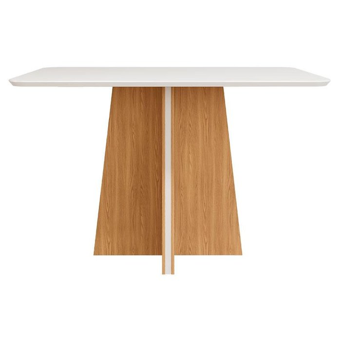 Mesa de Jantar Retangular Tampo Chanfrado Curvo Vanda DJ Móveis Carvalho Nobre/Off White