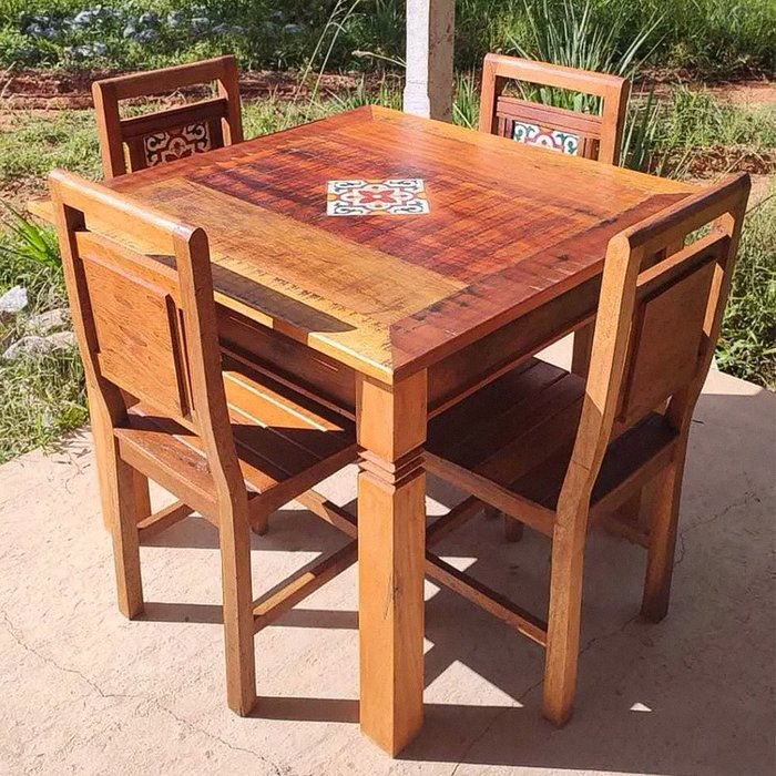 Mesa de Jantar Rústica em Madeira Maciça 1,40m Quadrada com Ladrilho