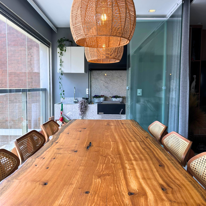 Mesa de Jantar Rústico Elegante - Madeira Maciça Pequiá - Borda Orgânica