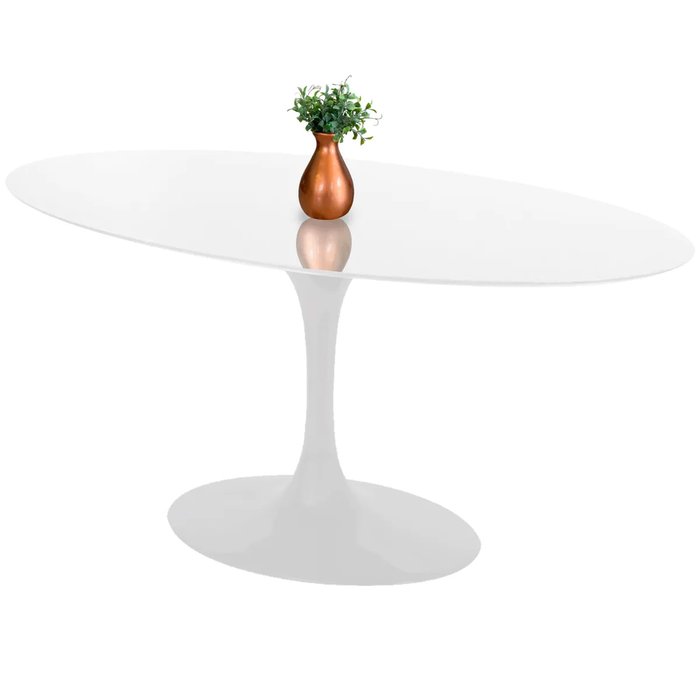 Com um design único criado no ano de 1956 pelo renomado finlandês Eero Saarinen, a Mesa de Jantar Oval Saarinen Branca com Tampo Coverglass é símbolo de modernidade, sua estrutura em alumínio fundido com pintura automotiva branca e exclusivo polimento Bella Brasil Decor trás resistência e charme para a peça além é claro da modernidade do tampo coverglass que une requinte e durabilidade.