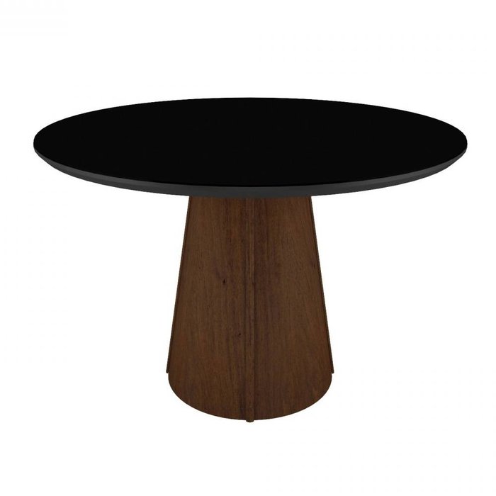 Mesa de Jantar Santos Redonda 120Cm Amêndoa Tampo de Vidro Preto