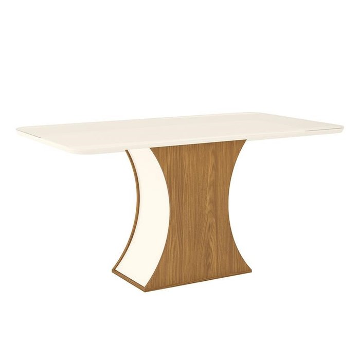 Mesa de Jantar Selena Canto Arredondado com Vidro 160x90 Nature/Off White - Móveis Henn