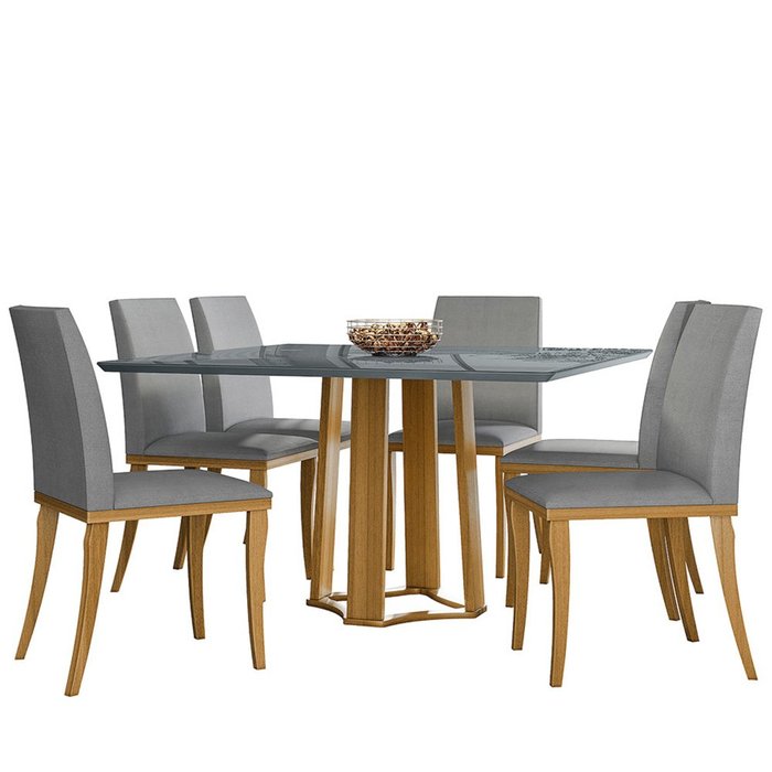 Mesa de Jantar Trevisan 135cm Cinza com 6 Cadeiras Vicky N02 Ypê/Linho Cinza - Mpozenato