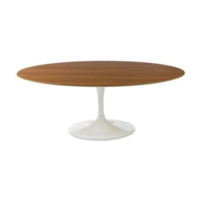 Mesa de Jantar Saarinen Oval, Tampo 160x90 cm em MDF Laminado em Madeira, com contra tampo em MDF, Base em alumínio fundido com pintura automotiva PU.