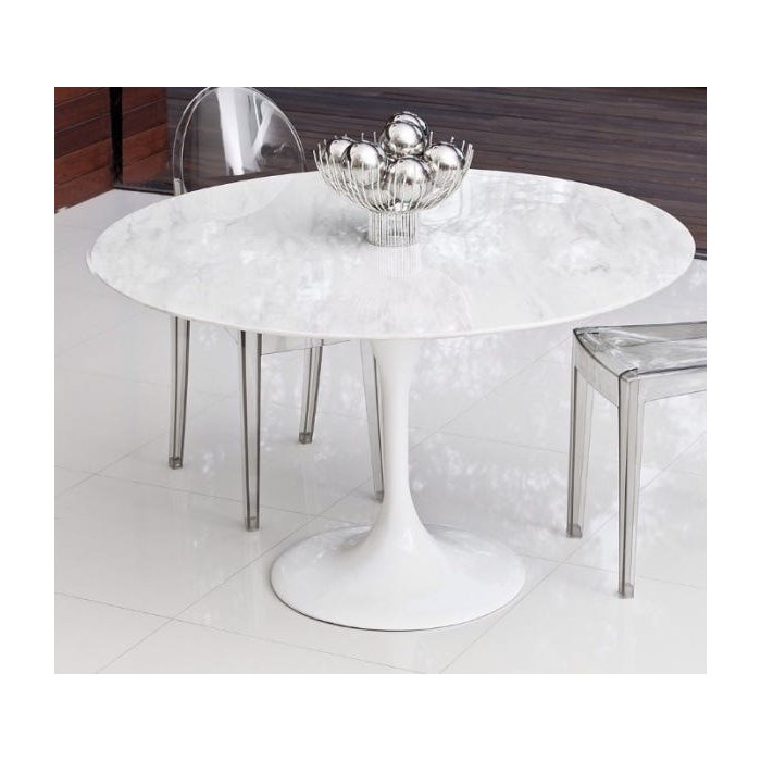Mesa de Jantar Tulipa Saarinen Redonda 90cm Mármore Branco Extra - Branco