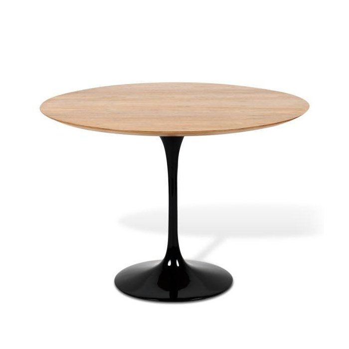 Mesa de Jantar Tulipa Saarinen Redonda 90cm Tampo Freijó Base Preta Freijó