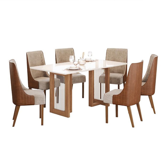 Mesa de Jantar Yara Tampo de Mdf com 6 Cadeiras Ivy Nature/off White/corano Caramelo/suede Creme - M