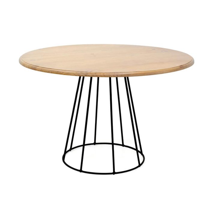 Mesa redonda com tampo feito em madeira maciça com característica rústica e base de ferro na cor preta. Essa mesa de jantar acomoda confortavelmente 4 pessoas à sua volta e combina com vários estilos de decoração!