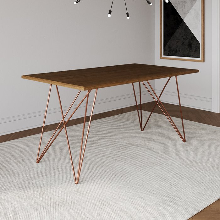Mesa De Jantar Trama Base Cobre Com Tampo Amêndoa 140 X 80 - Asturias - Cor: Marrom