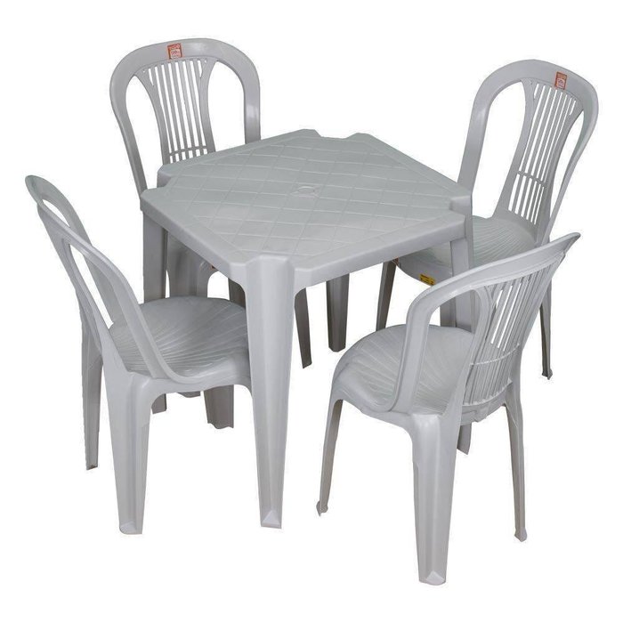 Esse modelo de mesa de plástico com 4 cadeiras é ideal para ser utilizada em buffets infantis, chácaras, espaços de lazer, lanchonetes, bares, pequenos restaurantes, botecos, além do uso residencial.