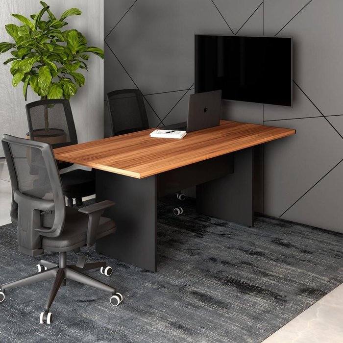 Mesa de Reunião Escritório 180cm X 80cm Pés Painel F5 Office Cor:nogal com Preto
