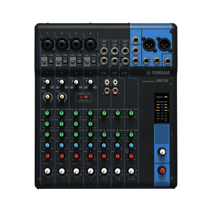 A Mesa de Som Yamaha MG10 faz parte da série MG incorpora a busca da excelência em design, e incorpora algumas das mesmas tecnologias desenvolvidas para uso em high-end consoles profissionais, incluindo pré-amplificadores com qualidade de estúdio, processamento digital poderoso e uma construção robusta.
