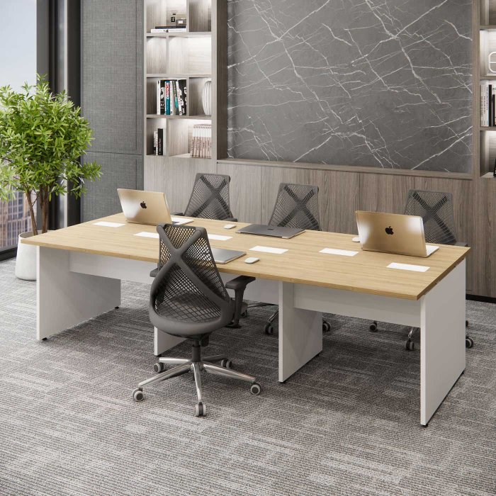 Mesa de Trabalho Escritório para 6 Pessoas 2,70m Mac Br F5 Macadâmia/Branco