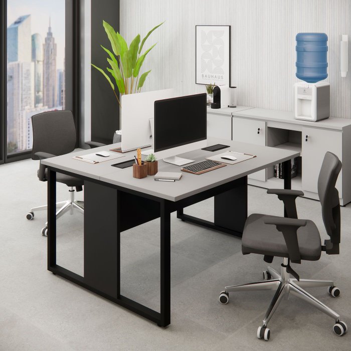 Mesa de Trabalho para Escritório 2 Lugares Cs Pre 1,35m F5 Cinza Sagrado/Preto