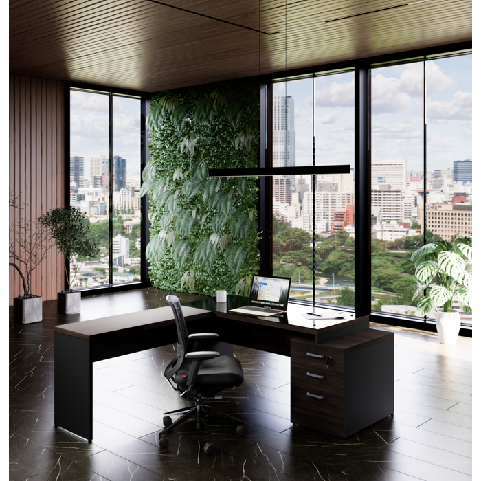 - Mesa 1,92 (tampo 1,70x0,70) 40mm com gaveteiro com 02 gavetas e Gavetão para Pasta Suspensa.