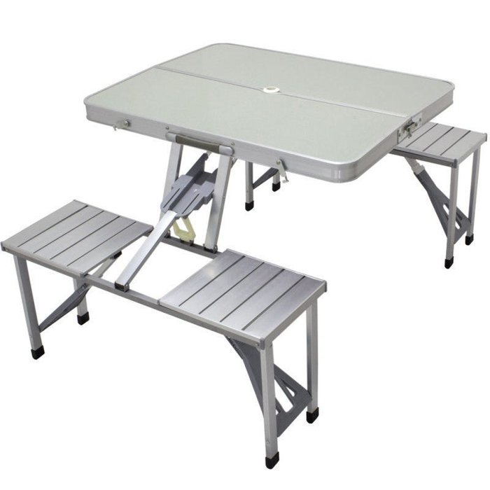 Mesa Dobravel Camping Alumínio 4 Banquetas Sup Guarda Sol Prata