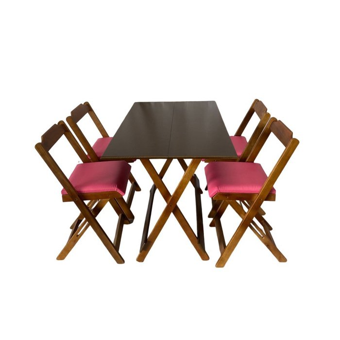 Mesa Dobrável com 4 Cadeiras Estofadas 120x70 Rosa Rosa
