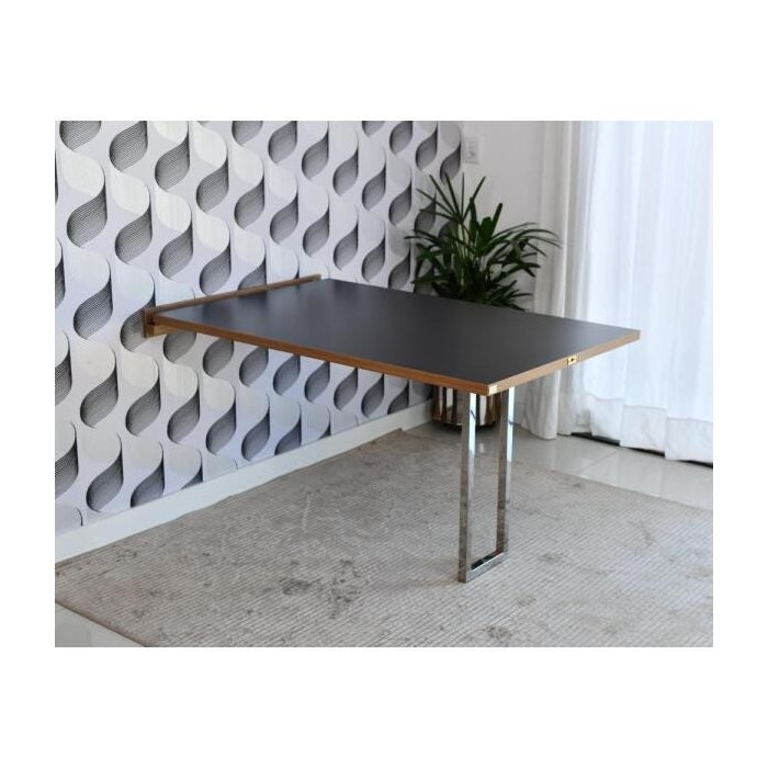 Mesa Dobrável Retrátil de Parede 140x89 - Base Inox Preto/Noronha