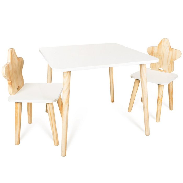 Mesa e 2 Cadeiras Infantil Estrela em Madeira Pinus Pinus
