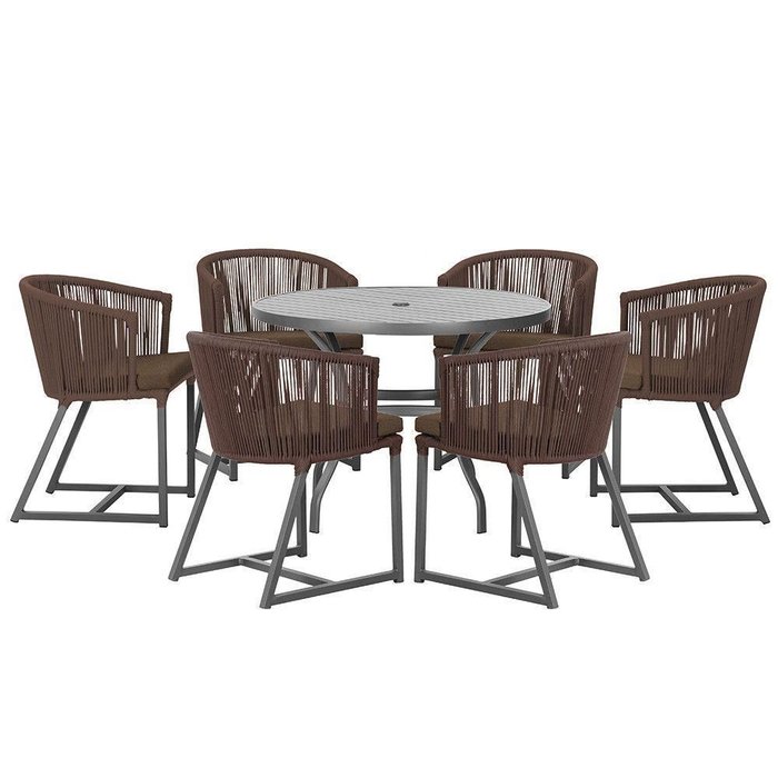 Mesa e 6 Cadeiras e Noronha Preto E9 Trama Original Marrom Marrom