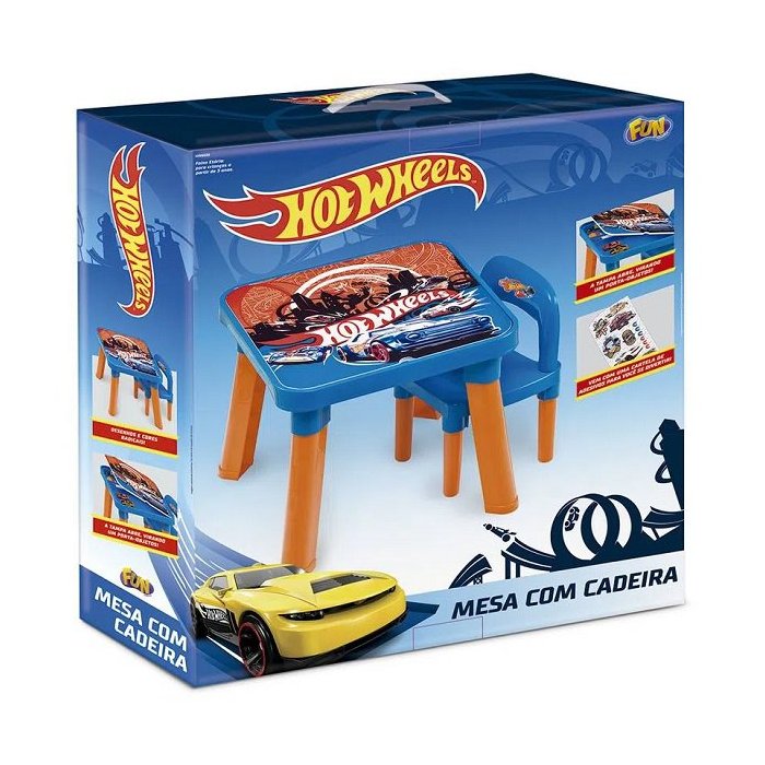 Mesa com Cadeira Hot Wheels - Fun Divirta-Se A Mesa com Cadeira Hot Wheels é muito legal e tem um desenho do personagem.