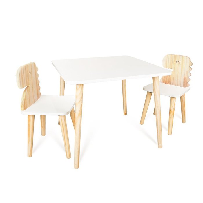 Mesa e Cadeiras Infantil de Madeira Pinus com Estampa Dinossauro Pinus