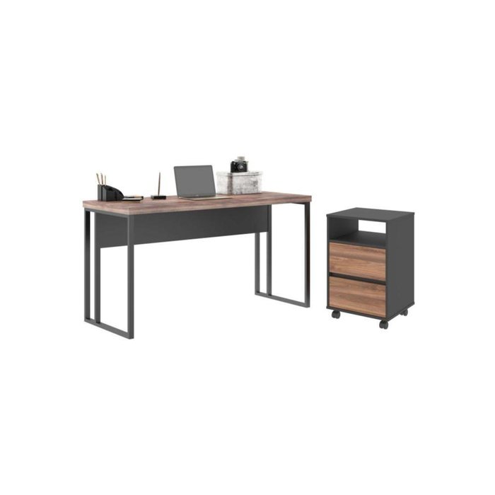 Mesa E Gaveteiro 2 Gavetas Vila Noce Preto