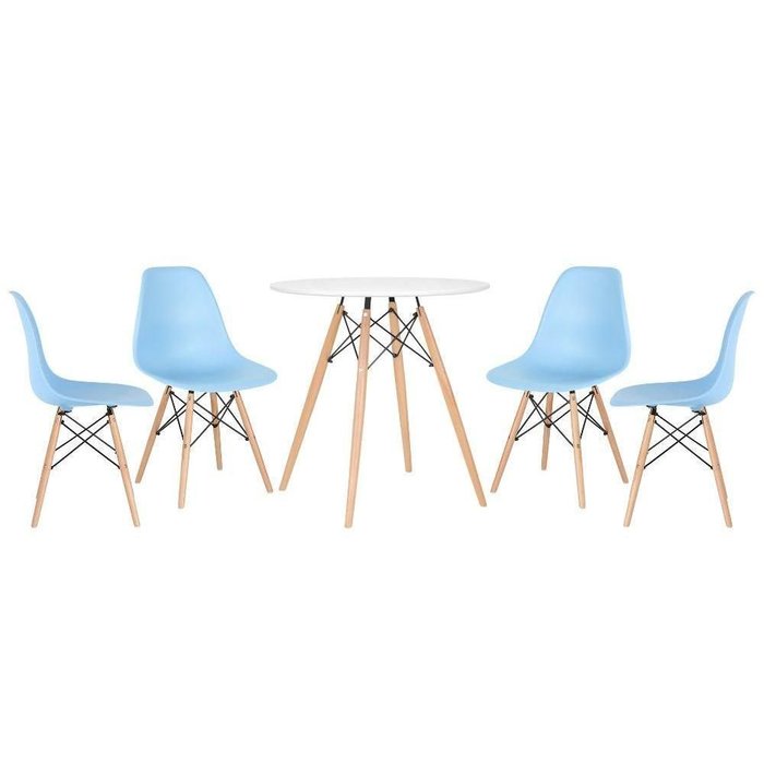 Mesa Eames 70 Cm Branco + 4 Cadeiras Eiffel Dsw Azul Claro Azul Claro