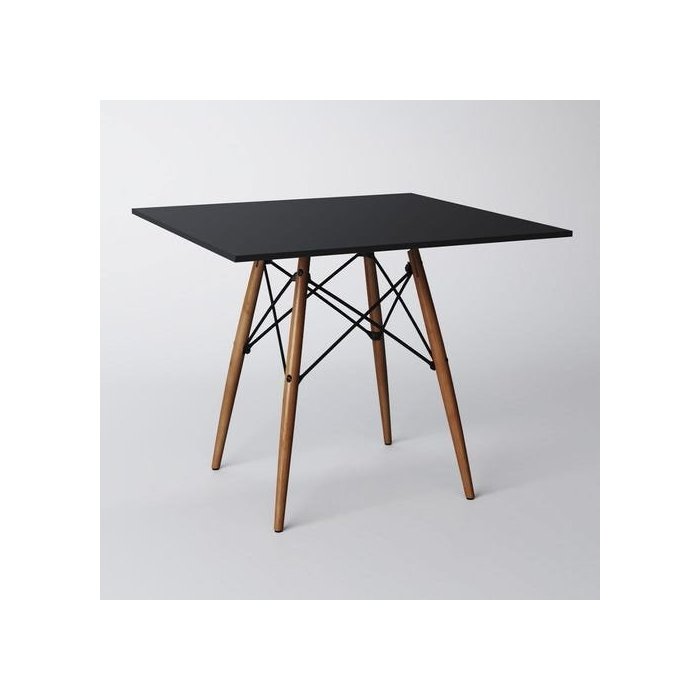 Mesa Eames Eiffel Quadrado Tampo de Madeira 90cm Preto