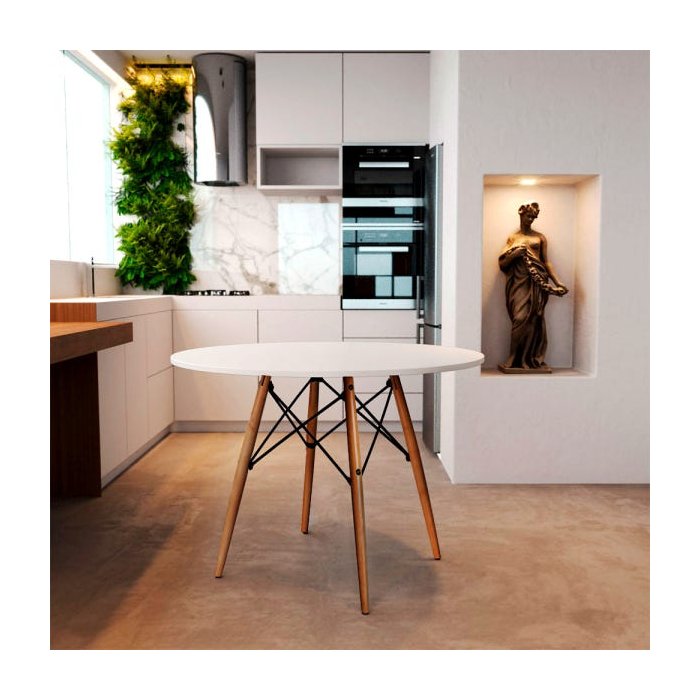 Mesa Eiffel Design Charles Eames 110cm Branca Base Madeira Maciça
