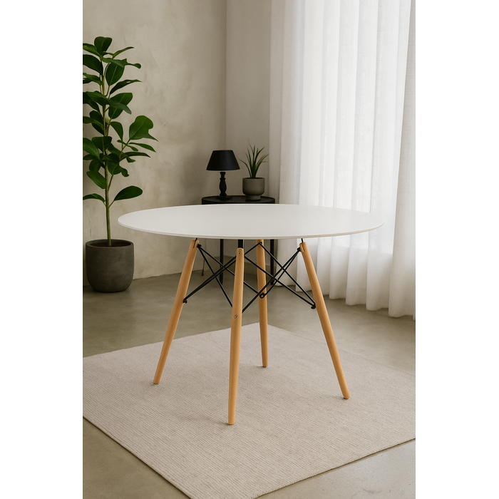 Mesa Eiffel Eames Redondo Tampo de Madeira 90cm Branco Branco