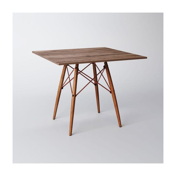 Mesa Eiffel Wood Cobre Tampo de Madeira Quadrada 90cm Amêndoa New Green