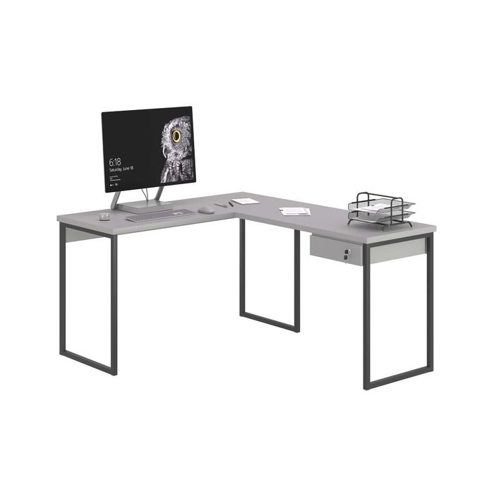 Mesa em L com 1 Gavetas Ferv Cinza Cinza