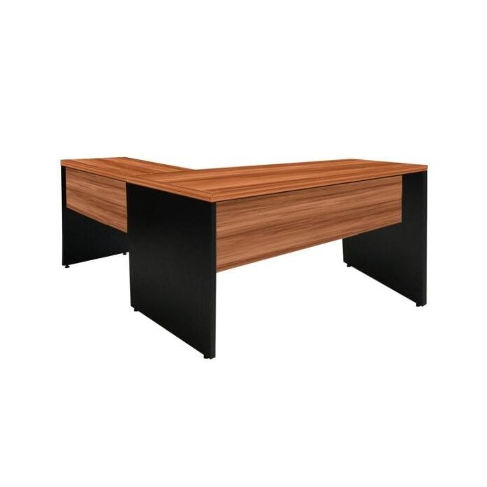 Mesa em L (Mesa 1,50M + Mesa Auxiliar) - sem Gavetas - Workstart - Nogal Sevilha/Preto - 21476
