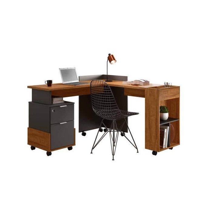 Mesa em L para Escritório Alessa Amêndoa com Chumbo fosco