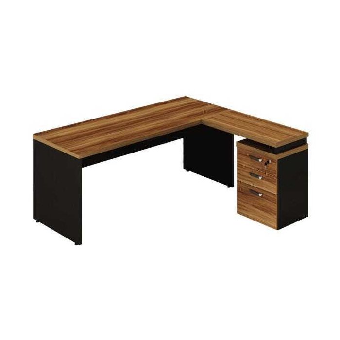 Mesa Escritório em "L" com Gaveteiro 1,70x1,60m - GEBBWORK - NOGAL SEVILHA/PRETO - 21423