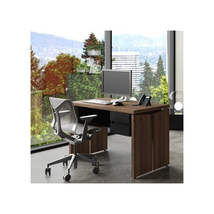 Mesa Escritório Escrivaninha 120cm Y37 2 Gavetas com Chave Artany Nogal/Preto