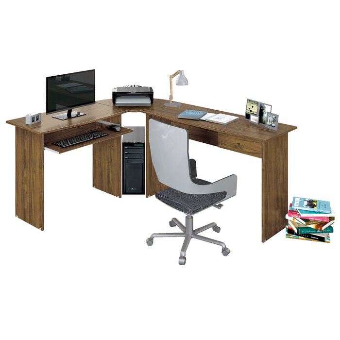 Mesa Escritório Escrivaninha de Canto Estação de Trabalho Max 1G 1 Gaveta para Computador Nogal Fosc