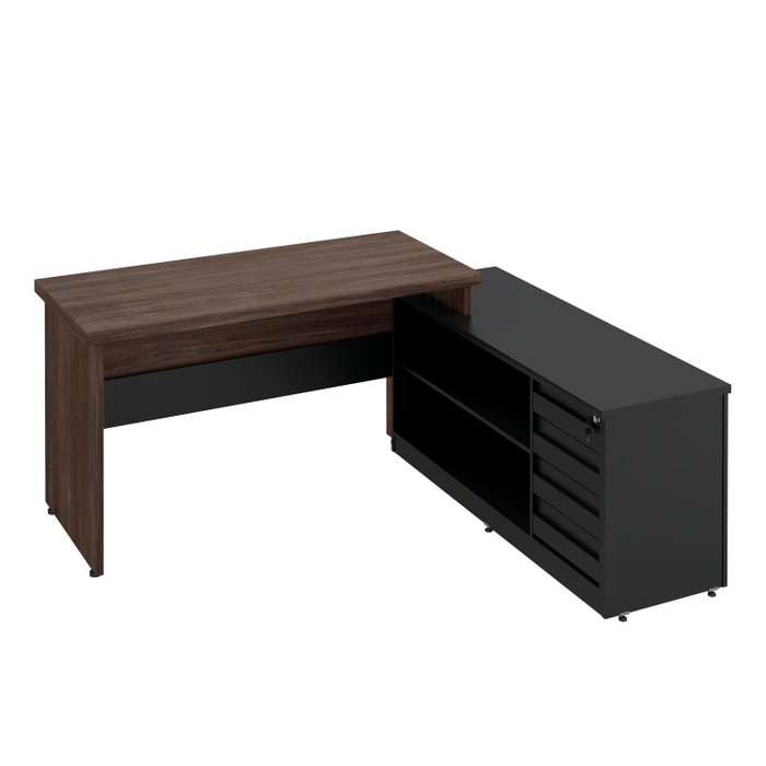 KIT BALCÃO LUIS XV em MDP BP com acabamento de bordas em ABS de 1 mm ? Mesa e Balcão conjugado com Prateleiras, Gaveteiro 4 gavetas com Corrediças Telescópicas e Chave fechando simultaneamente todas as gavetas. ? Tampo da Mesa 40 mm e Pés 25 mm com Niveladores de altura. ? Opção de montagem do balcão pode ser dos dois lados (Esquerdo ou Direito).