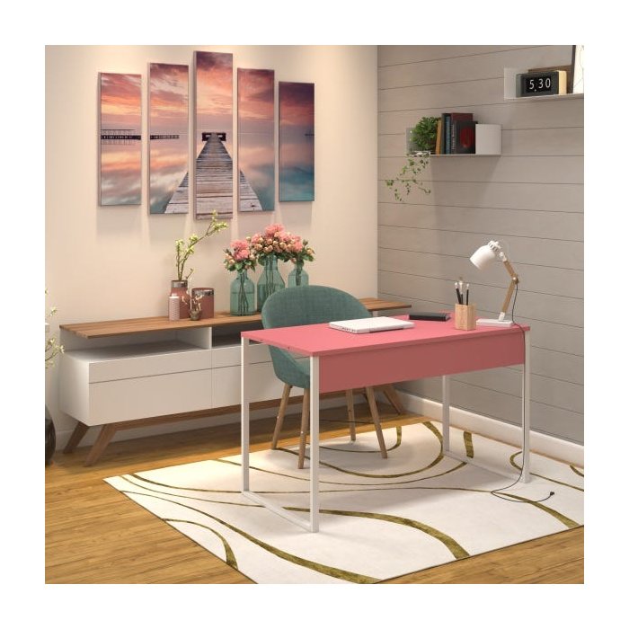 Mesa Escritório Home Office Rose de Apoio 120x60 Rosa Branca