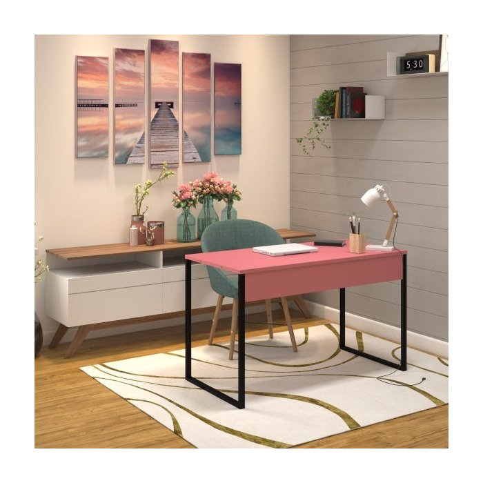 Mesa Escritório Home Office Rose de Apoio 120x60 Rosa Preta