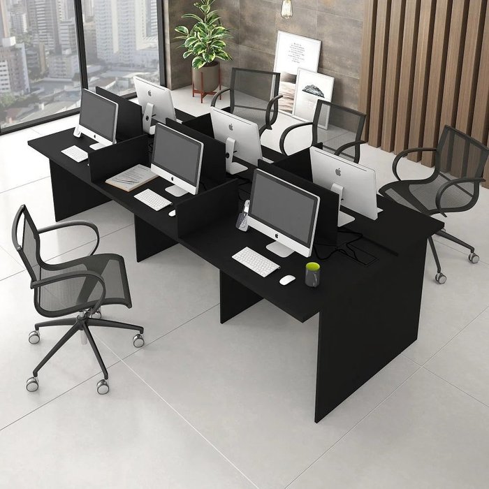 Mesa Escritório Plataforma 6 Lugares 2,70x1,20 Preto Inteira Atacadao Dos Móveis