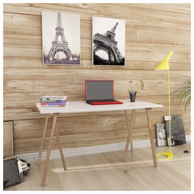 Mesa Escrivaninha 135cm Tampo Cavalete Trio Uvim Branca E Mel branca e mel