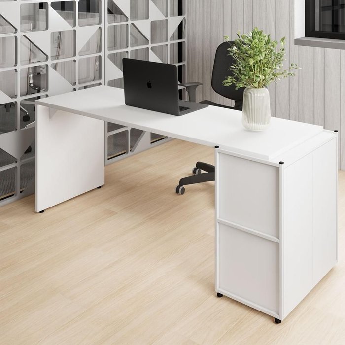 A Mesa de Escritório 170 cm com Armário é uma solução prática e funcional para quem busca otimizar o espaço de trabalho, oferecendo não apenas uma superfície ampla para atividades diárias, mas também armazenamento integrado para manter o ambiente organizado. Linha Corporativa de Alto Padrão com foco em proporcionar uma experiência única, produtos exclusivos que refletem a excelência em cada detalhe!